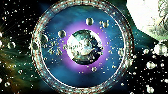 Bei dieser Installation handelte es sich um einen Faradayschen Käfig, der innen voll verspiegelt war, und in dem bis zu fünf Personen Platz nehmen und meditieren konnten. Dieser Raum war mit einer speziellen Strahlenschutzfolie ummantelt, sodass keine Störfrequenzen dort eindringen, und die Körperzellen somit in einen heilsamen Ruhezustand zurück finden konnten. Für dieses Projekt wurden drei aufeinander aufbauende und geführte Meditationsstufen mit Mandala-Musik-Gemälden kreiert, die innerhalb dieser Installation durch einen, in der Mitte befindlichen Bildschirm, in den Spiegelraum projiziert wurden.